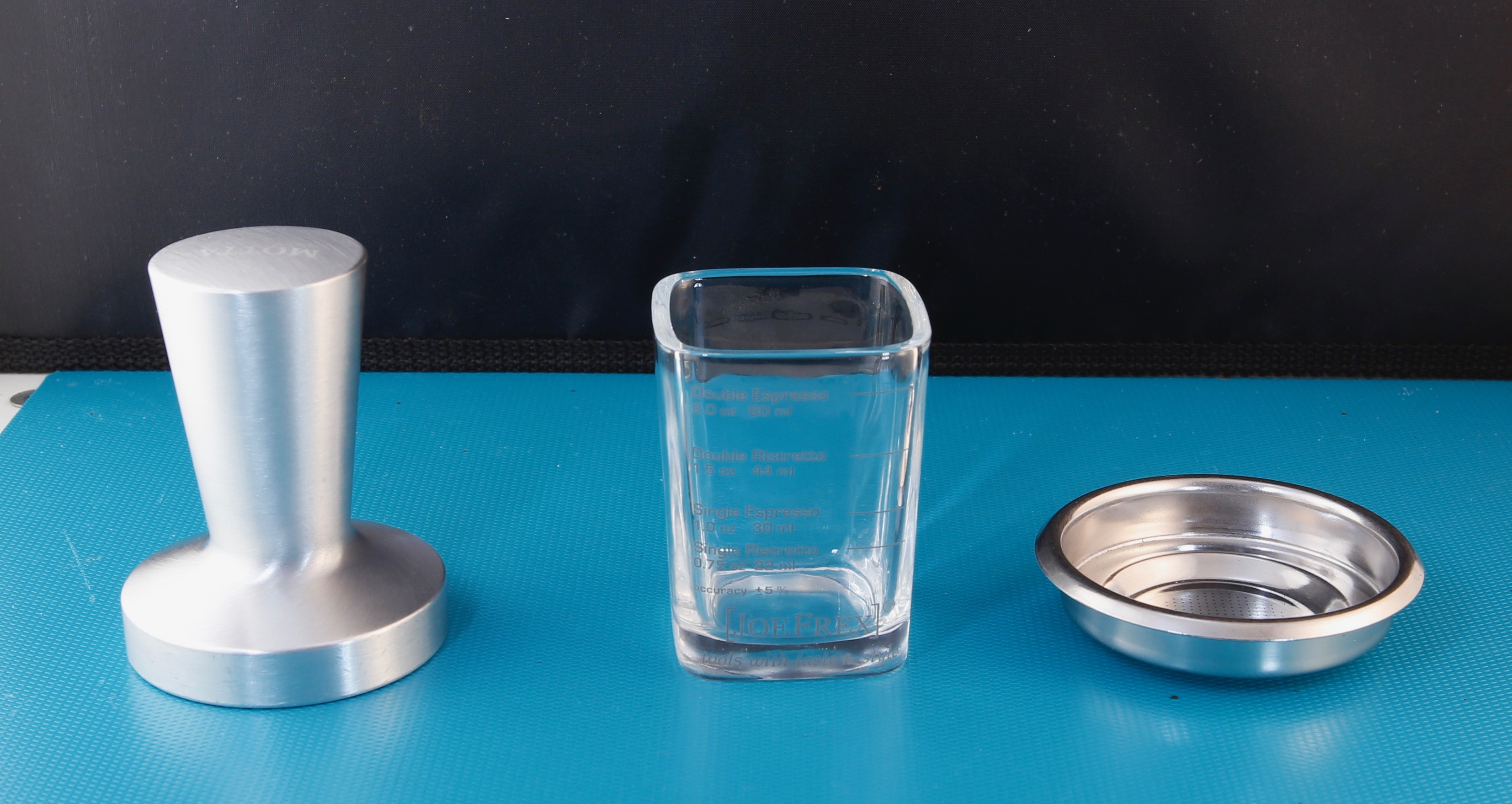 Enfin j’ai commandé un verre doseur, un filtre ESE et un tamper en 58mm.